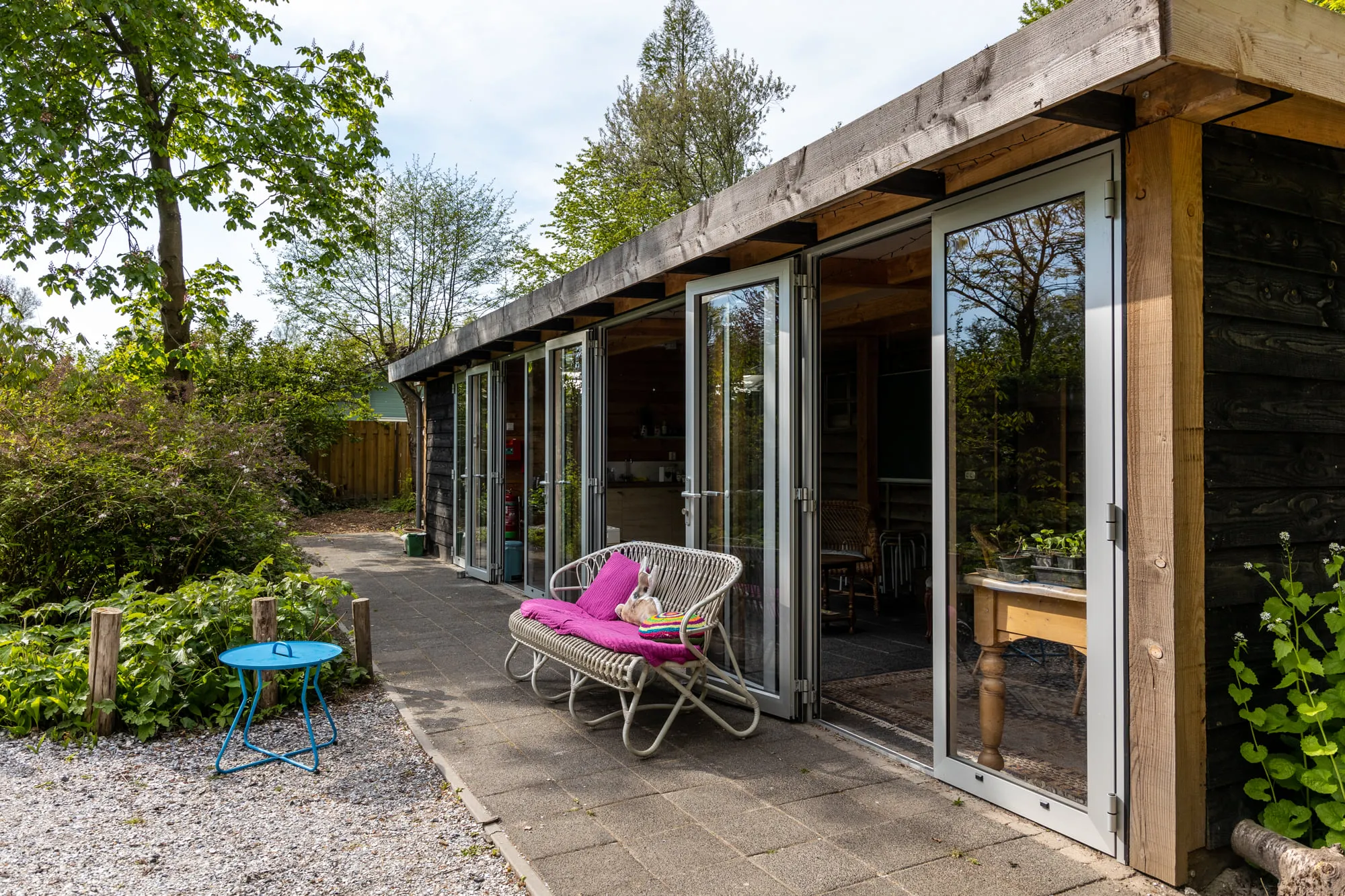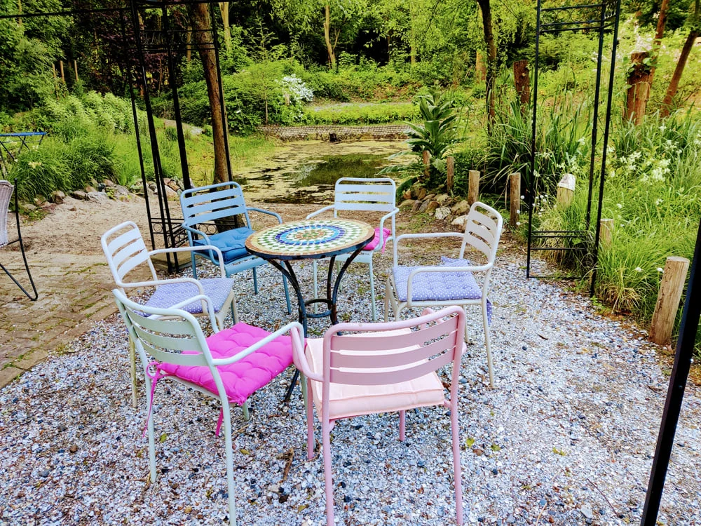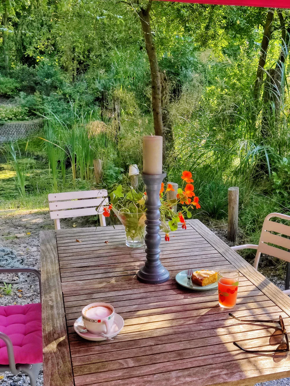 Wil je even pauzeren? Breng dan een bezoekje aan de tuinkamer met terras. Hier kun je genieten van een heerlijk kopje koffie of thee en een stukje taart terwijl je uitkijkt over de vijver.